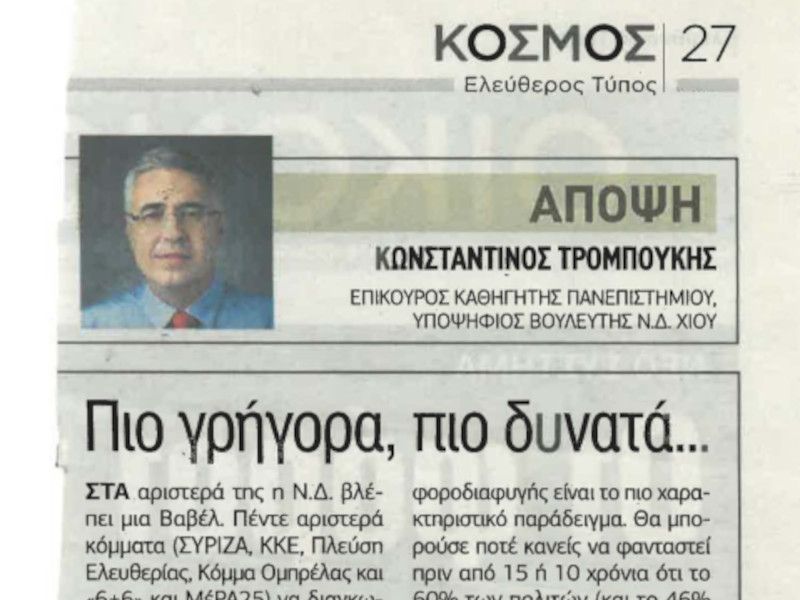 Πρόσφατο Άρθρο μου στον Ελεύθερο Τύπο