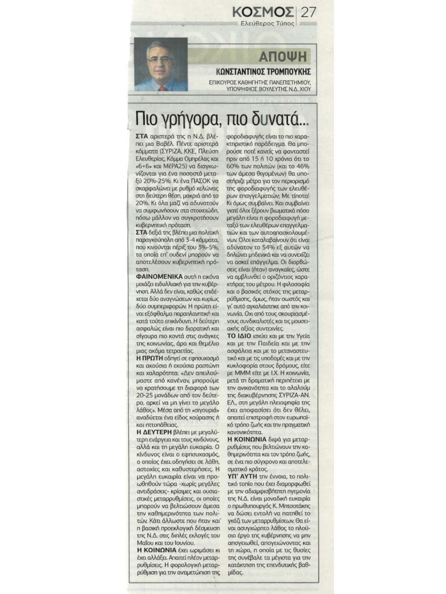 Πρόσφατο Άρθρο μου στον Ελεύθερο Τύπο